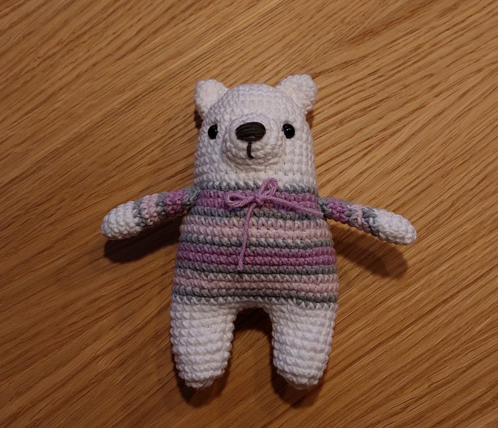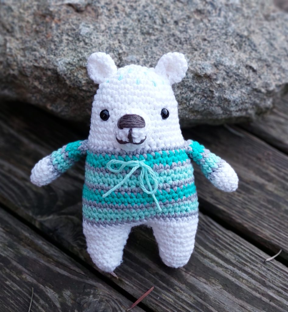 Překvapení je odtajněno – háčkovali jsme lední medvědy 🙂 Tenhle je Barunky. Baru sice raději háčkuje z žinylky, ale zvládla krásně i tenkou přízi Jeans.