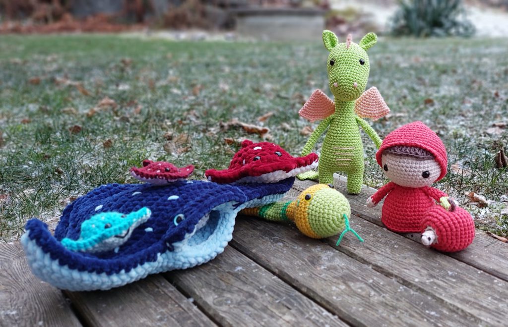 Vymýšlím, přemýšlím, háčkuji … Co by si asi tak děti chtěly uháčkovat? Něco malého nenáročného, aby měly brzy radost z hotového výrobku. Ale ne, aby to bylo moc malé, to se pak špatně háčkuje. Něco většího, složitějšího, aby potrénovaly novou dovednost. Ale nesmí je to odradit. Hlavně, aby to bylo hezké, roztomilé. A aby to stihli i ti s pomalejším tempem. A abych nezapomněla na Barunku, Oli a další žinylkové příznivce … Uff, snad zvolím dobře a každý si najde to své 🙂